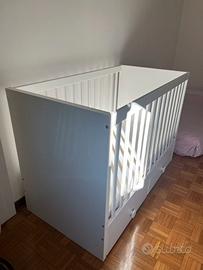 Lettino per bambini modello STUVA di IKEA. Il lettino è molto robusto dotato di due pratici cassetti dove poter inserire la biancheria da letto. La base del lettino è ben aerata per favorire la circolazione dell'aria e offrire al tuo bambino un clima piacevole in cui dormire. Comprensivo di materasso