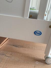 Vendo lettino per bambini in legno con spondine, una delle quali removibile per eventualmente accostarlo al lettone. Dotato di doghe in legno qualita Pali, ruote e freno. Minimi segni di usura