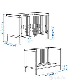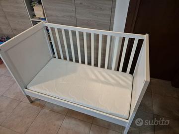 Lettino per bambini con base che si può alzare a due altezze diverse, completo di spondina assente nelle foto reali. A parte si vende il materasso se interessati con aggiunta di 10,00€. Inoltre a disposizione piccola spondina con aggiunta di 10,00€. Regalo copri materasso e lenzuola se realmente interessati.