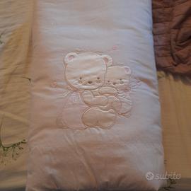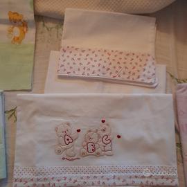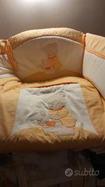Vendo lettino per bambini marca Mibb in legno color noce con cassetto estraibile e sponde regolabili completo di materasso, paracolpi e trapunta a 100 euro + eventuale corredino ( da bimba ) composto da 2 set lenzuola cotone, 2 set lenzuola flanella, copertina estiva, coperta pile e trapuntina a euro 150.