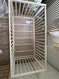 Vendo lettino Ikea GULLIVER bianco in ottime condizioni. Dimensioni: 60x120 cm. La base del lettino si può montare a due altezze diverse. Si può smontare una sponda quando il bambino è più grande. Lo vendo insieme al materasso con coprimaterasso impermeabile e altre lenzuola,paracolpi, 2 cuscini a cuneo e cuscino allattamento e gravidanza come da foto. Il lettino si trova in buono stato, ha solo un foro ( come da foto ) in quanto abbiamo agganciato la telecamera. Il lettino è già smontato.