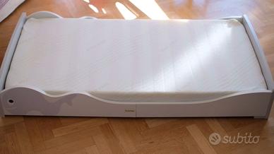 Vendo Lettino Bambino Basso Montessori Balena Bianco, usato ma in ottime condizioni + materasso Aloe anallergico, perfetto per bimbi di età dai 2 ai 5 anni. Manca solo una doga (questo giustifica il prezzo), ma per il resto è perfetto. Disponibilità a spedizione a carico dell' acquirente. Preferita consegna a mano.