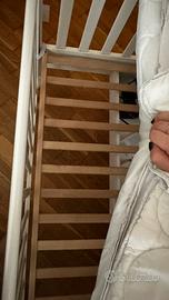 Lettino con rete regolabile in due altezze, sponde regolabili in due altezze, cassetto contenitore e ruote. Vendo completo di materasso ipoallergenico. Ritiro a mano zona Cadoneghe. Nono ho lo scatolone originale ma ho libretto istruzioni montaggio