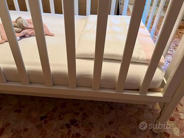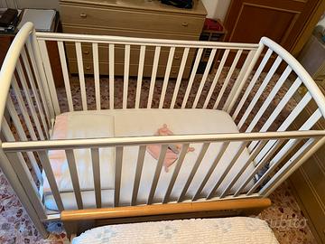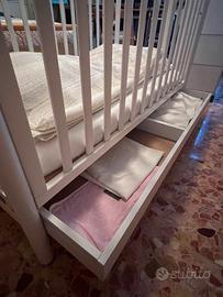 Vendo lettino con cassetto a scomparsa, materasso, cuscino e lenzuola. usato pochissimo perché si trovava a casa dei nonni. 73x130cm 85cm spondina 94 altezza max. Con cuscino e lenzuola. Zona Venezia ISOLA