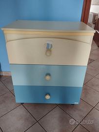 Vendo set completo per bambino in buone condizioni composto da lettino con sponde mobili 4 ruote piroettanti con sistema frenante, materasso piumino paracolpi federa per cuscino. Misure L 132 cm P 72 cm H 103 cm. Incluso anche fasciatoio con 3 cassetti cassetti (con piccoli segni di usura), vasca per bagnetto e 4 ruote piroettanti con sistema frenante. Misure L 74 cm P 45 cm H 89. Ideale per neonati, tutto il necessario in un unico acquisto. Ritiro a mano, per ulteriori informazioni contattatemi.