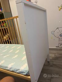 Vendo lettino bambino regolabile in 3 altezze. Con rotelle per spostarlo senza problemi.