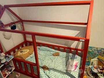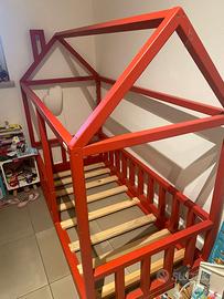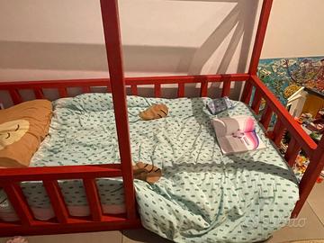 Letto a casetta per bambino, marca lettino di lena artigianale ,rosso, misure 168 x 77,5, altezza 139, materasso ikea della foto in omaggio