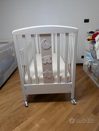 Lettino con sponda bambini compreso materasso,lenzuola e coprimaterasso air top safe- traspirante eriduttore