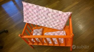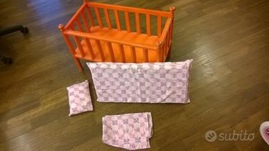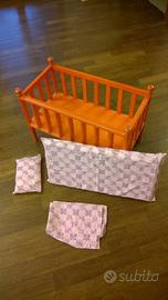 Lettino in legno per bambole realizzato artigianalmente e di ottima fattura.