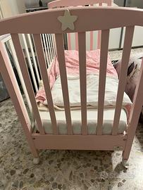 Lettino marca cuoricini completo di tutto dono anche piumone paracolpi e lenzuolo sotto sopra e federa con cuscino antisoffoco (non posso mettere altre foto perché non riesco a caricare piu di sei )visionabile già smontata tenuto bene prezzo trattabile