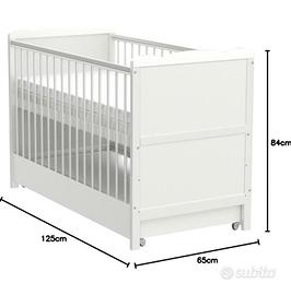 Lettino bianco in legno Marsell regolabile con tre posizioni di altezza.