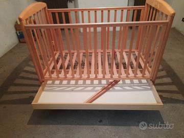 lettino in legno con sponda mobile e cassetto, ottime condizioni.