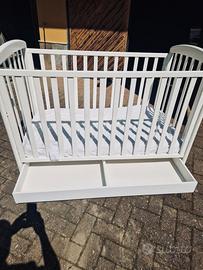Lettino bambini bianco con materasso. Doppio cassettone. Sponda regolabile. Ottime condizioni