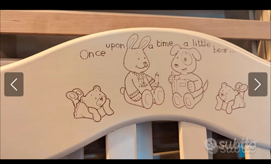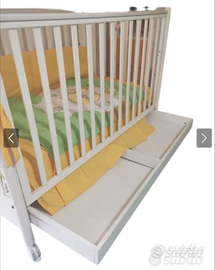 Lettino marca Pali colore avorio, completo di materasso nuovo ancora imballato. N. 2 copri materasso impermeabile. Paracolpi
