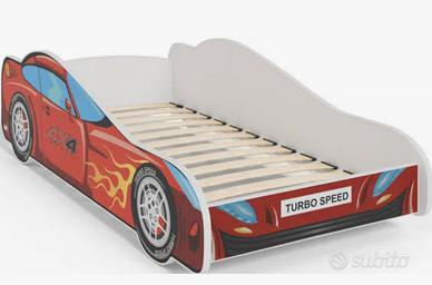 Lettino bimbo a forma di Ferrari, rossa con doghe in legno e materasso. Nuovo mai usato.