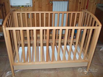 Lettino mibb con cassetto, sponde regolabili, rialzi rete. Struttura in ottime condizioni, materasso presente ma molto datato.
