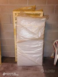 lettino classico bianco in legno completo di cassetto e materasso come nuovo già smontato.