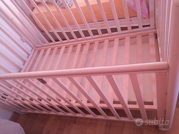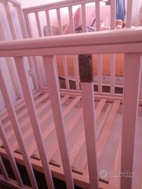 125x75 robusto, buono stato ma ha una stecchetta rotta, da sostituire o incollare. Regalo set paracolpi e piumino più alcuni lenzuolini e cuscinetto. Ritiro a carico acquirente.