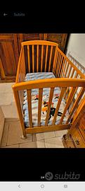 lettino bimbo in legno, perfetto completo di materasso, usato pochissimo forse due tre mesi perfetto in tutto con cassettone portalenzuola