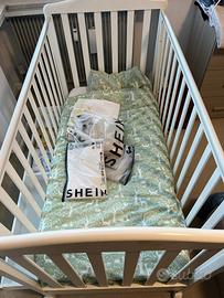 Materasso memory foam, cuscino, biancheria e copri materasso igienico. Completo di un comodissimo cassetto a doppio scomparto. Il lettino è usato, ma in buone condizioni.