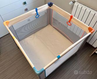 Vendo lettino da campeggio/box marca Hauck in ottime condizioni, compreso di materassino e 4 anelli colorati.