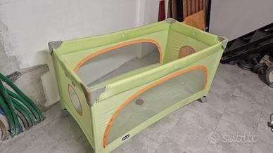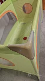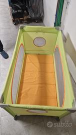 Comodissimo lettino da viaggio, utilizzabile anche da box, con rete e zip per aprirlo sui lati.