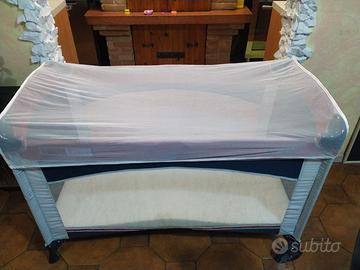 Completo di fasciatoio utilizzabile dalla nascita, arco giochi e tasca laterale porta pigiama.