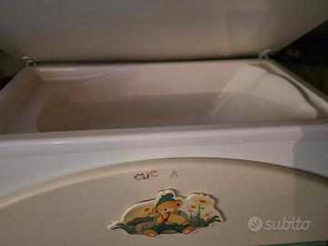 lettino con sponde mobili (tutta altezza mezza altezza e trasformabile anche in divanetto) con cassetti