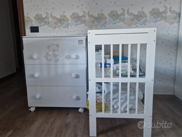 Per rinnovo cameretta vendo Lettino e Cassettiera (con vaschetta per bagnetto e materassino) marca Ital baby, vendo anche Fasciatoio Ikea con materassino.