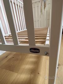 Lettino Chicco usato pochissimo, completo di materasso e relativo lenzuolo. Usato pochissimo condizioni ottime. Utilizzabile anche al contrario come lettino montessoriano.