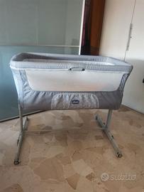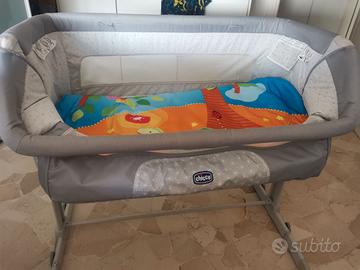 Pratico lettino Chicco, con ruote per spostamenti, apertura laterale, altezza regolabile, materassino incluso, ottimo stato