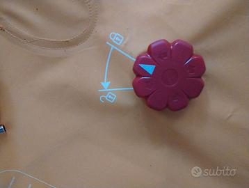 Ha il materassino imbottito e un allegro porta-pigiama a forma di fiore, removibile, utilizzabile anche come zainetto.