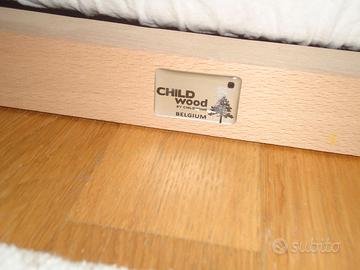 Lettino per bambini Childwood in legno di faggio massello, smontabile dim. 70 x140 cm. completo di base a doghe e materasso, come nuovo