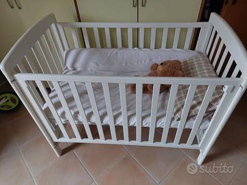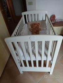 Lettino con sponda retraibile per utilizzo co-sleeping. Marca Cuoricini. Completo di materassi.