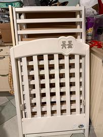 Endo lettino per bambini come nuovo, materiale fi qualita, conpleto fi materasso e cassettiera. Rete con doge e ruote per spostarlo.