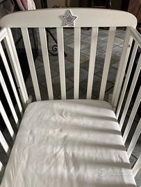 In ottime condizioni. Compreso di materasso con lato estate e lato inverno. Compreso di alzadoghe per i primi mesi. Ritiro a mano tra Recco e Nervi.