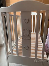 Incluso: materasso sfoderabile, paracolpi , set lenzuola con piumoncino. Tutto unisex