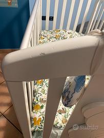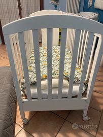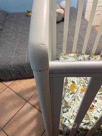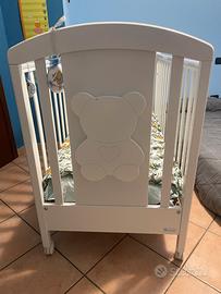 Lettino con ruote e ssbarre, cassettone doppio, sbarra che si abbassano( una lato DX)!colore bianco orsacchiotto si vende con materasso. * Lunghezza: circa 130 cm * Larghezza: circa 71 cm * Altezza: circa 100–106 cm * Materasso: 60 × 120 cm Vendo con materasso in perfette condizioni piccoli segni in foto . Ritiro ed eventuale smontaggio a carico dell’aquirente. Ritiro a Castellazzo Bormida. Prezzo di 250€