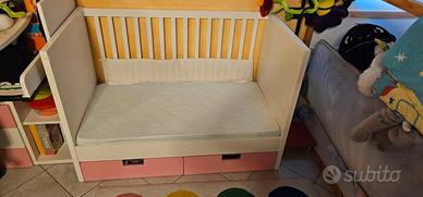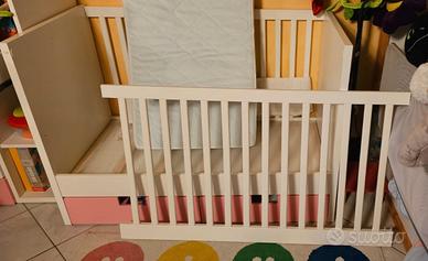 Vendesi lettino con sbarre. Possibilità di doppia altezza. possibilità di togliere una delle sponde, compreso di materasso. modello Stuva ikea. 2 cassetti nella parte inferiore. pari al nuovo perché usato pochissimo.