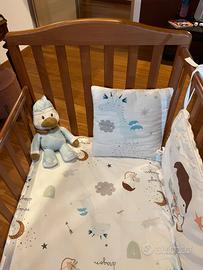 Culla Web Azzurra Design Spondine con dentino protettivo in materiale trasparente e atossico - Sponda laterale in legno massello di faggio - Dotata di rete a doghe a doppia posizione - Rete a doghe in legno massello di faggio e vernice atossica - Le sponde laterali sono conformi agli standard di sicurezza - Il comodo cassetto può essere utilizzato da entrambi i lati - Bordi arrotondati per la massima sicurezza - 1x binario fisso per la sicurezza del bambino Misure interne: 125 x 64 cm. Misure esterne : 130 x 71 x h 102 Materasso, cuscino e kit copri piumino+paracolpi in coordinato compresi nel prezzo. Ritiro a carico dell’acquirente.