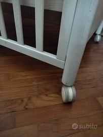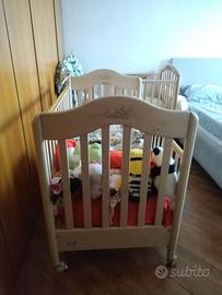 Lettino della Pali (edizione Musicale) con sbarre laterali abbassabili, cassetto portaoggetti, ruote scorrevoli e freno per fermare in posizione il lettino. Purtroppo il carion integrato non è funzionante. Regalo materasso compatibile (60x120) lenzuoline con angoli, paracolpi e cuscino (dovrei avere anche delle copertine/piumoncini). Ritiro a carico dell'acquirente. Materiale in rovere naturale, atossico.