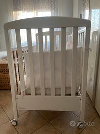 Dotato di materasso 60*120, proteggi materasso e paracolpi.