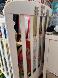 Vendo lettino per bambini in legno bianco dal design classico e robusto, ideale dalla nascita fino ai 3-4 anni circa. Il lettino non e’ stato mai utilizzato in quanto mio figlio dorme nel letto matrimoniale e come si vede dalle foto e’ usato come deposito. Caratteristiche principali: • Sponde di sicurezza: Entrambe le sponde sono a norma di legge con stecche a distanza di sicurezza. Una delle sponde è [regolabile in altezza / removibile] per facilitare la presa del bebè. • Rete ergonomica: Base a doghe in legno che garantisce il corretto sostegno e un'ottima traspirazione del materasso. • Ruote piroettanti: Dotato di 4 ruote antigraffio (di cui 2 con freno) per spostarlo facilmente da una stanza all'altra.