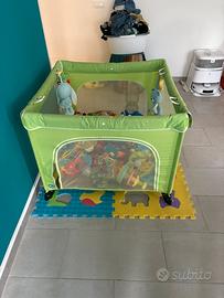 Lettino con sponde azzurra+box chicco richiudibile