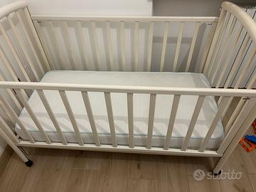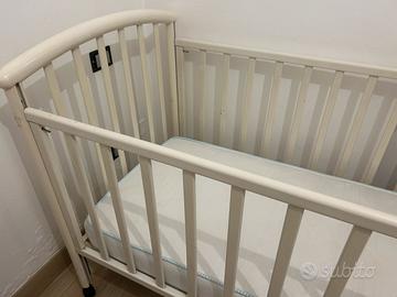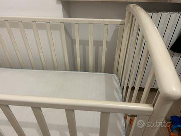Vendo lettino con sponde Foppapedretti bianco, dotato di ruote piroettanti, ampio cassetto, materasso, paracolpi e piumone invernale