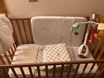 Lettino nuovo mai usato con materasso antiacaro nuovo, e ogettistica in omaggio tra cui cuscino, paracolpi, giostrina, lenzuola ecc