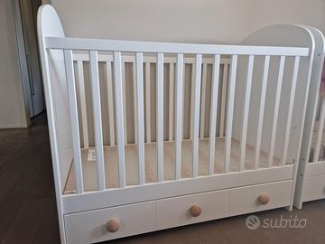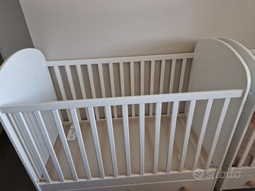 Vendo lettino bianco con cassetto modello Ikea Gonatt, 60x120 cm, sponde removibili e regolabili in altezza. Materasso Ikea compreso.