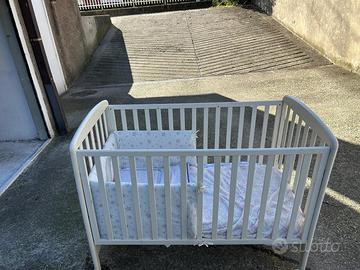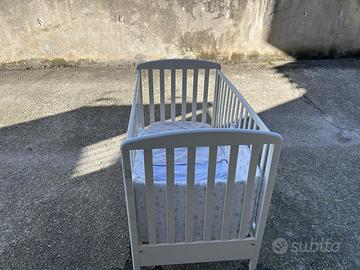 Vendo lettino con sponde abbassabili e cassettone sotto, incluso paracolpi a stelline che si vede in foto e due sacchi con alcune lenzuola, copertine, federe e il cuscino. Alcuni segni di usura, ma sicuro per l’utilizzo. Prezzo trattabile!