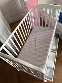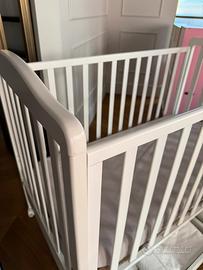 Lettino e materasso con cassetti e sponde che possonk abbassarsi.