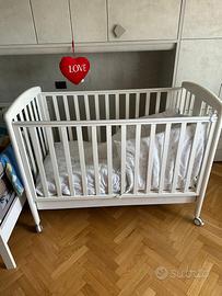 Lettino in perfette condizioni con sponde abbassabili e rimovibili, con cassetto estraibile